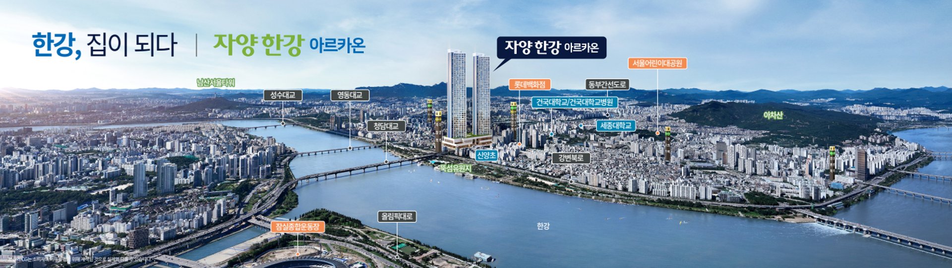 자양(뚝섬유원지)역 건대입구역 역세권 뚝섬한강공원 도보로 이동 민간임대아파트 자양한강아르카온